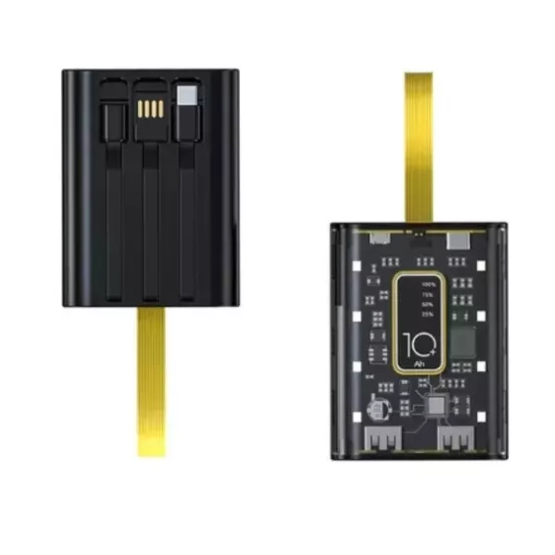 Diseño tecnológico: el cargador portátil rápido Meiyin MIUSC 3 en 1 de 10.000 mAh 4 en 1, diseño único de almacenamiento de cable te permite cargar y recargar directamente, sin necesidad de llevar ningún cable de carga adicional cuando salgas. El puerto PD o los cables de carga rápida integrados (hasta 66 W de salida) permiten una carga rápida de tus dispositivos sobre la marcha. Incluye: 1 banco de energía de 10.000 mAh, 1 manual de usuario (idioma español no garantizado), 1 cable USB C a USB C y 1 año de servicio de devolución e intercambio de artículos.