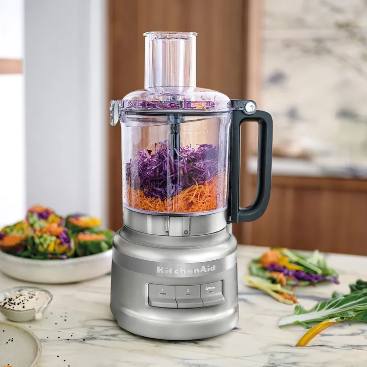 Recipiente de 9 tazas<br>Tapa con tubo de alimentacion 2 en 1<br>Cuchilla multiusos Cuchilla para masa<br>Disco reversible de corte medio/rallado<br>Disco de corte grueso<br>Tapa refrigerador