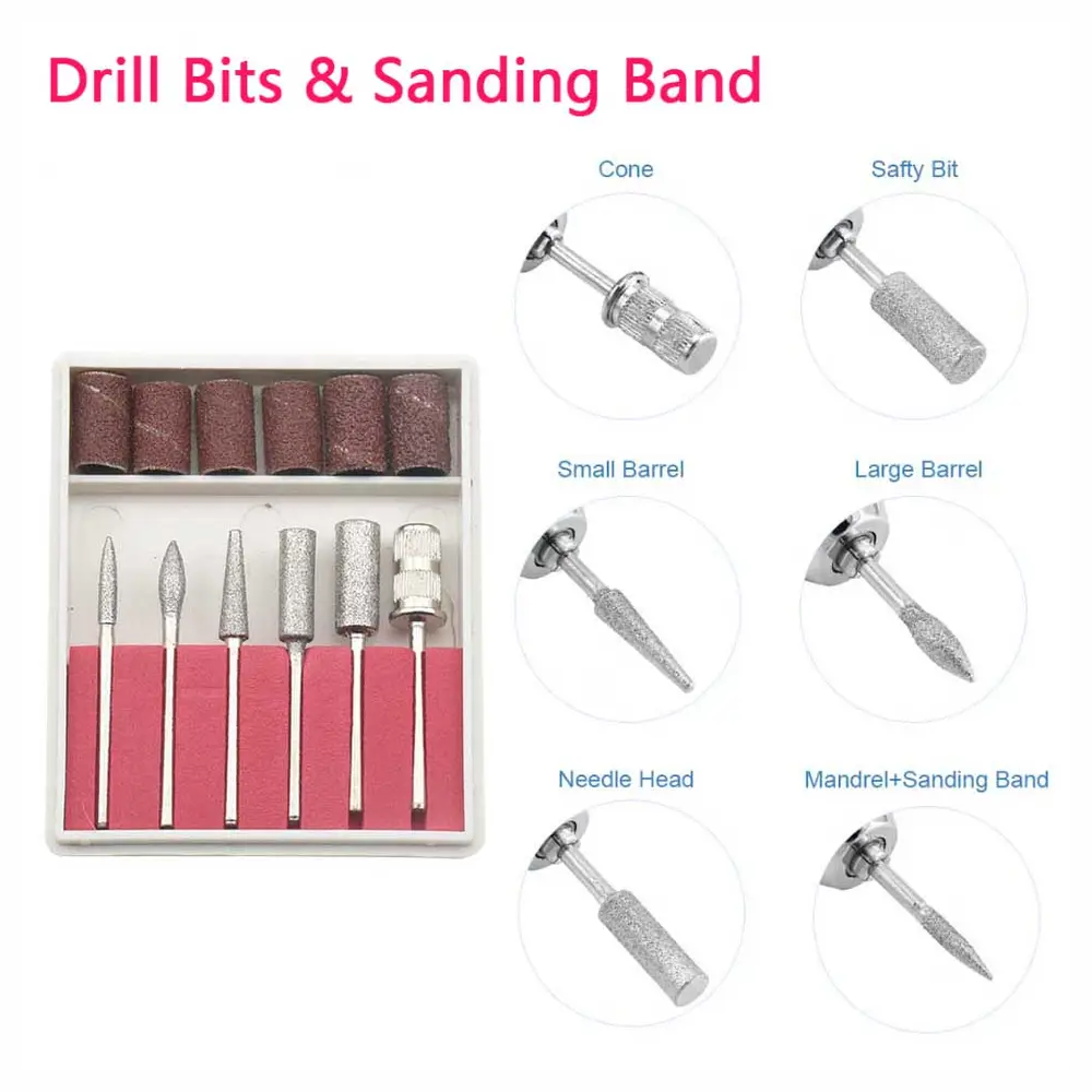 Multifuncional: la manicura eléctrica viene con 6 formas diferentes de broca. Pule las uñas para un brillo saludable, empuja las cutículas hacia atrás y estimula el crecimiento de la herramienta de moldeo de uñas, aplana y suaviza las uñas extra gruesas y la superficie rugosa. Hecho de metal de alta calidad para múltiples usos: manicura, tallado, grabado, corte, enrutamiento, molienda, afilado, lijado, pulido. La lima de uñas se puede utilizar para uñas naturales, así como para uñas artificiales, para uso profesional en estudio o uso doméstico.