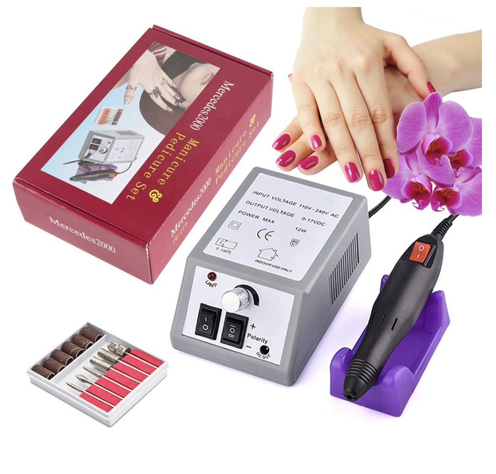 Torno para uñas eléctrico para manicura o pedicura + accesorios. Es el torno y pulidor ideal para donar nuevo brillo y forma a las uñas. Gracias a las 6 fresas intercambiables y 6 cilindros de lija incluidos permite modelar, suavizar, esculpir, afilar, dar brillo a las uñas y eliminar durezas tanto en las manos como en los pies.