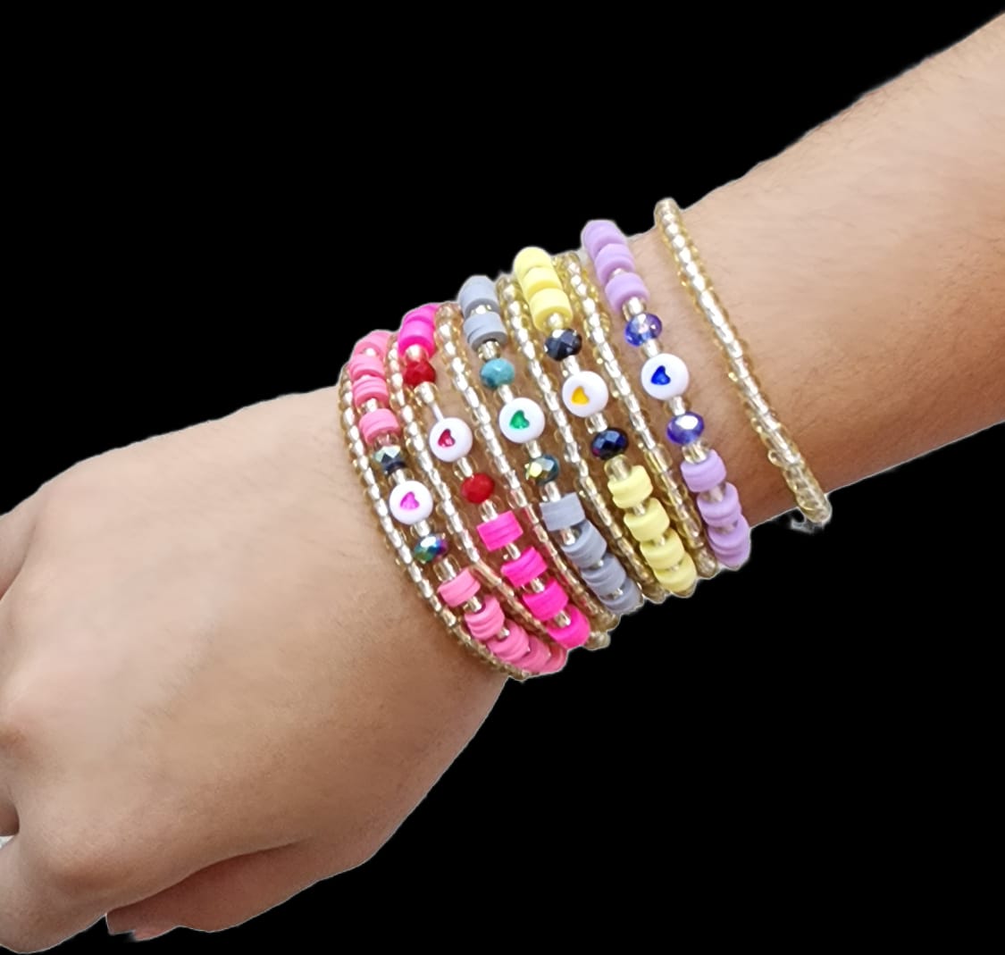¿Estás buscando un accesorio elegante y sofisticado para complementar tu look? ¿Quieres lucir una joya única y exclusiva que refleje tu personalidad? Entonces, te encantará esta pulsera de bisutería con piedras de múranos que hemos diseñado especialmente para ti. Esta pulsera está hecha con chaquiron checo, un material de alta calidad y durabilidad que no se oxida ni se desgasta con el tiempo. Además, tiene un diseño original y moderno, con una argollas en fimo, que se adapta a cualquier tamaño de muñeca. Esta pulsera es el regalo perfecto para ti o para alguien especial, ya que es una pieza única y personalizada que no encontrarás en ninguna otra parte.