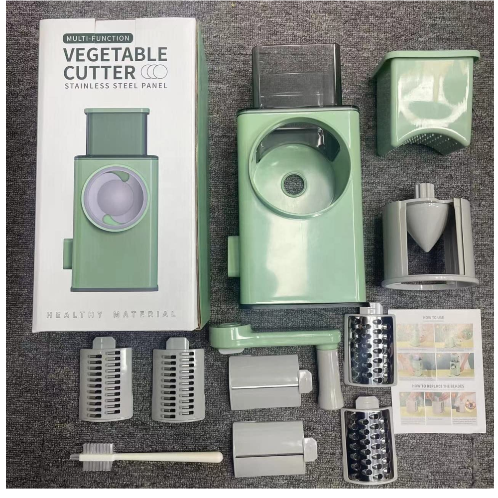 Múltiples utensilios de cocina en uno: el cortador de alimentos tiene tres cuchillas intercambiables, un pelador y un cepillo, que es un gran ayudante de cocina tanto para principiantes como para personas mayores. | El cortador de alimentos tiene tres cuchillas intercambiables, un pelador y un cepillo, que es un gran ayudante de cocina tanto para principiantes como para veteranos.