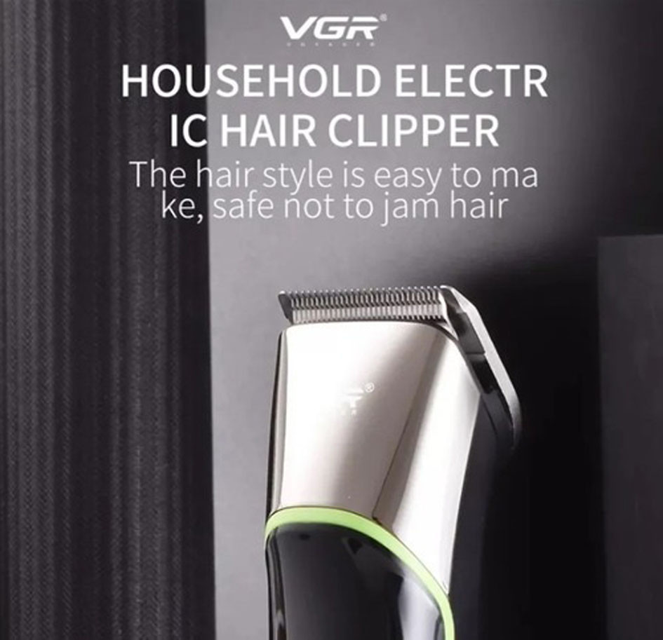 Máquina para cortar pelo profesional marca VGR recargable con indicador de batería, la batería tiene una duración de 3 horas, sus cuchillas en acero inoxidable hacen que su corte sea más preciso y su motor de alta revolución es muy silencioso, tiene el peso adecuado para que sea cómoda de manejar, el cable con el cual se carga se puede conectar a cualquier cabeza de celular para que sea fácil y rápido de cargar.