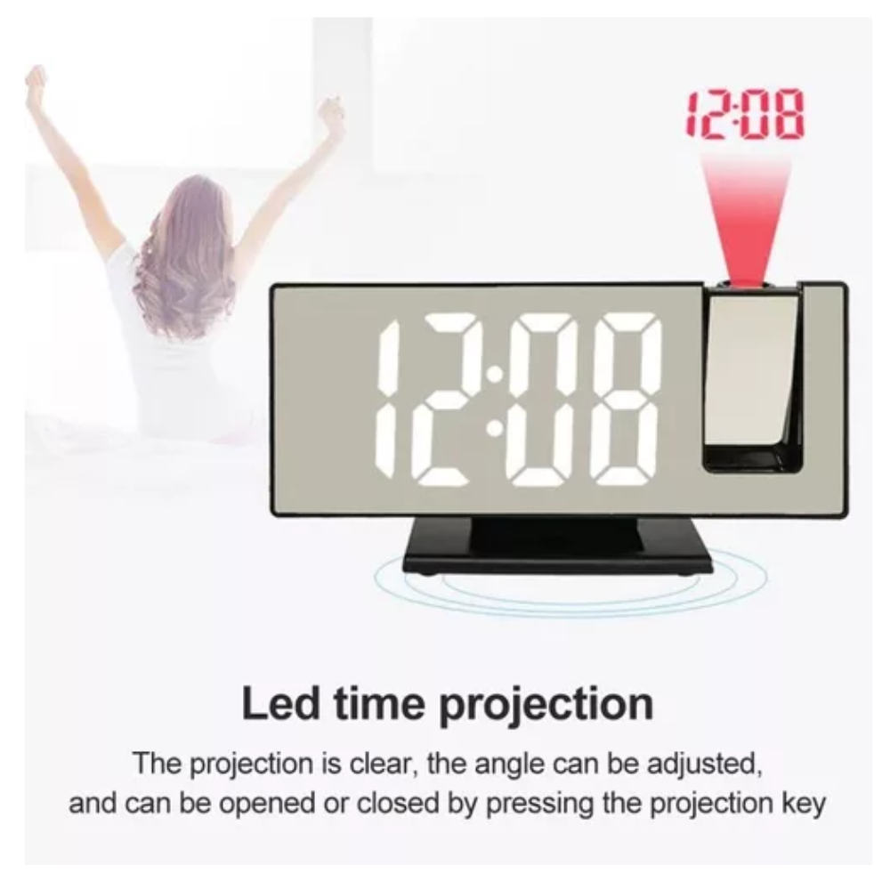 Proyección transparente personalizable: este reloj digital puede proyectar el tiempo en la pared o el techo, por lo que los durmientes no tienen que rodar al comprobarlo. El brazo puede girar 180 grados para un posicionamiento óptimo, obtener una buena cosa. Además, puedes ajustar el brillo de su pantalla principal cada vez. Este reloj digital viene con un atenuador de brillo de 3 niveles para garantizar la búsqueda óptima de una configuración para sus sesiones de sueño. Alarma con volumen de zumbador progresivo: este reloj despertador de proyecto en particular para dormitorios viene con un volumen de zumbador progresivo, amigable para durmientes pesados que no se usarán con el sonido fuerte repentino. Y presionando el gran botón SNOOZE en la parte superior, puede obtener 9 minutos extra preciosos de sueño hasta el próximo lazo de esta alarma. El sistema de batería de respaldo contiene configuraciones durante las salidas: el dispositivo también está equipado con características adicionales convenientes que es un sistema de respaldo único. Este es vital porque puede retener todos los conjuntos incluso después de un corte de energía, y puede usarse durante aproximadamente 2 años. Este producto tiene un adaptador para usar, NO hay energía. Un regalo para cualquier ocasión: diseño elegante y con estilo, embalado en un hermoso regalo. Una gran opción para mostrar su cuidado y una idea inusual para sorprender. Este despertador digital es un regalo perfecto para todos, sin importar el viejo o el joven, hombre o mujeres, niños o niñas. También es adecuado para cualquier festival como cumpleaños, Navidad, Día de Valene, Día del Padre, Día de la Madre, etc. Especificaciones: Material: espejo de policarbonato + ABS. Color: verde/blanco/rojo/colorido Entrada USB: CC 5V Distancia de proyección: 0,5-5 m Formato de hora: 12H/ 24H Tipo de alimentación: USB : Celda de botón (no incluida) Lista de empaque: 1 * reloj de proyección 1 cable USB. 1 manual de usuario.