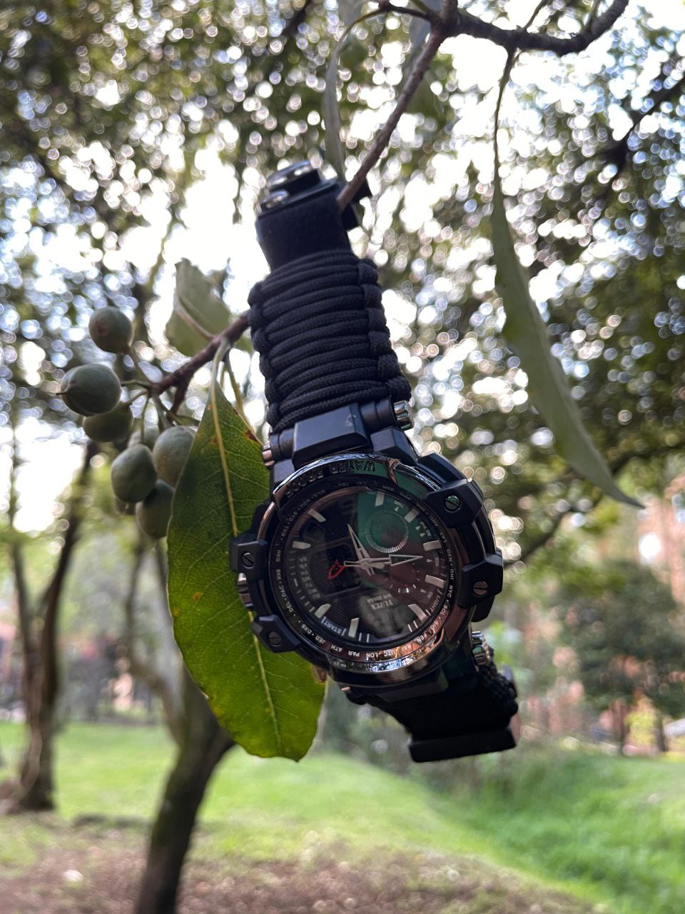 Reloj de pulsera de equipo de supervivencia 7 en 1: reloj de pulsera de supervivencia, iniciador de fuego, paracord, reloj, brújula, silbato, termómetro, rascador. El rascador se puede utilizar como cuchillo y atrapa el fuego. Silbato de emergencia para señalar a los rescatadores. Con el reloj y la brújula, no te perderás.
