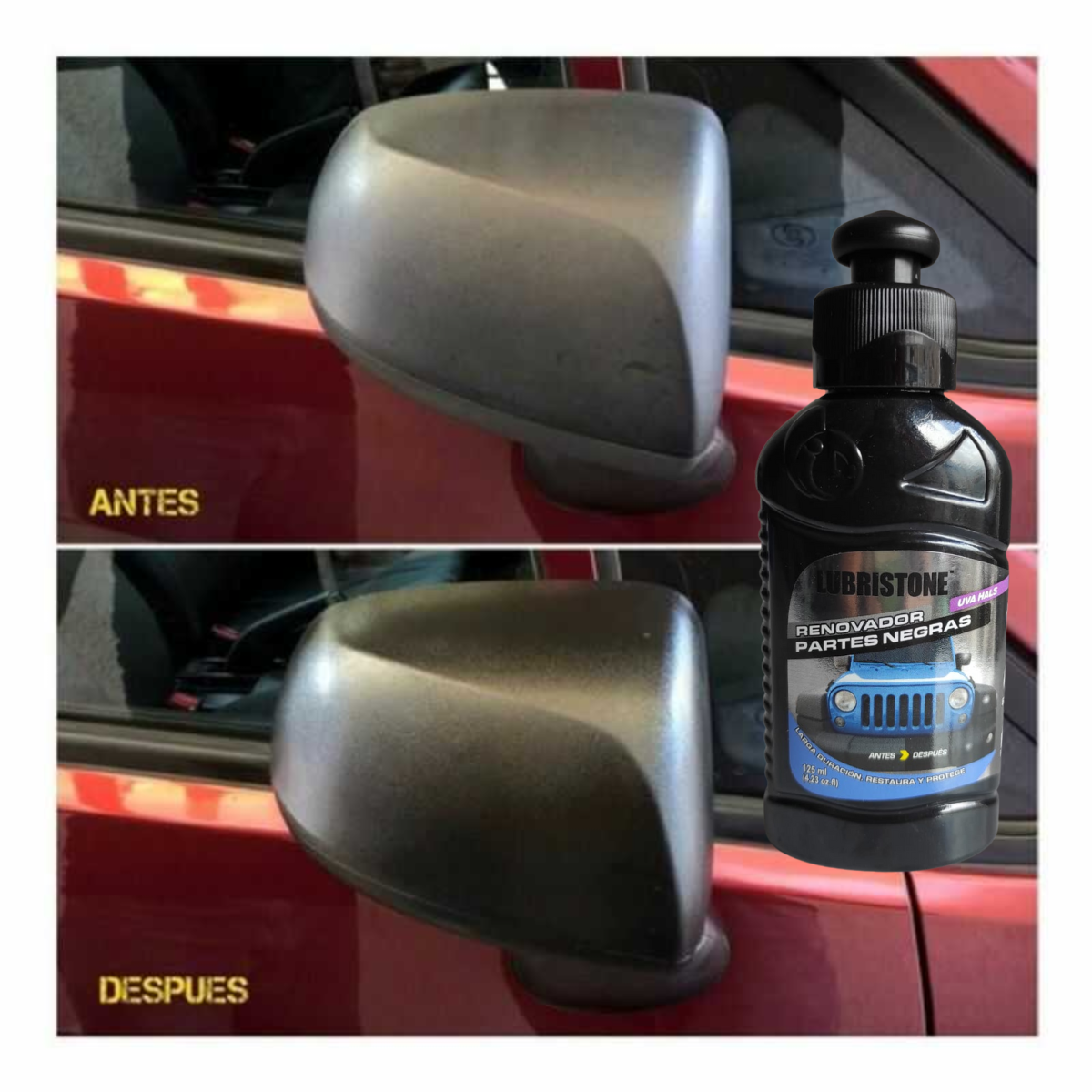 Hemos desarrollado una formula innovadora que protege, cuida y restaura las partes negras de tu vehículo! Con el restaurador de partes negras marca Lubristone nunca mas vas a tener tu vehículo con apariencia desgastada y tendrá una apariencia de siempre nuevo y reluciente.