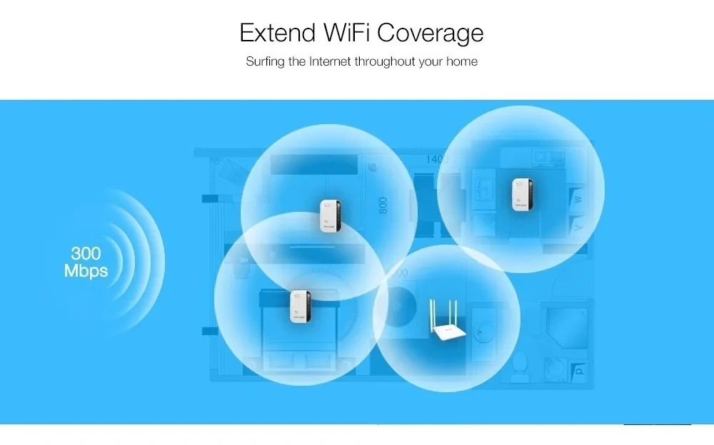 – Alta velocidad: la extensión de la red inalámbrica existe a un área de difícil acceso con una velocidad de hasta 300 Mbps, creando una red de alta velocidad, de largo alcance y estable.