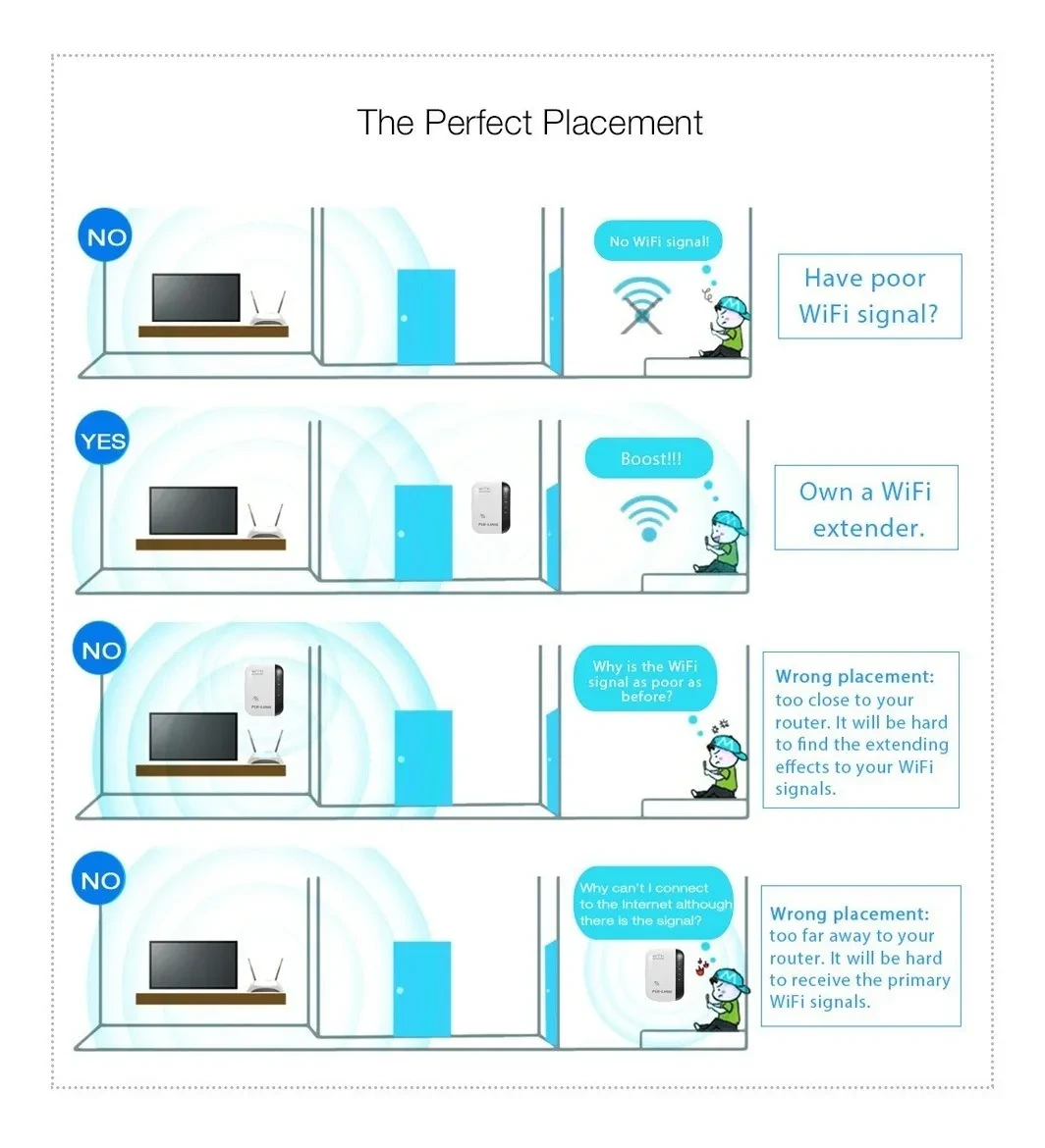 – Sin zonas muertas de red: chip integrado y antenas integradas, este extensor wifi puede ampliar fácilmente tu rango wifi y eliminar tus puntos muertos wifi.