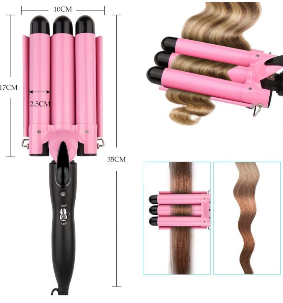 Descripción: El rizador de pelo está hecho de cerámica PTC, que es un bloque de calentamiento y evita quemaduras. Además, se puede utilizar para hacer un peinado elegante y de moda en poco tiempo. El sistema de calefacción único hace que la calefacción sea más rápida y segura. Características: 1. Hierro varilla caliente, libera una gran cantidad de iones negativos cuando se calienta. 2. Artefacto de rizo de tres barras, sistema de calefacción único, fácil y conveniente para dar forma. 3. Tecnología de revestimiento de esmalte de cerámica importada, resistencia al ácido y alcalino, resistencia a la luz y a altas temperaturas. 4. Hecho de cerámica de turmalina, no dañe su cabello. 5. Se puede utilizar para hacer un estilo de pelo elegante y de moda en poco tiempo. 6. Modelos LCD de temperatura ajustable, 160-180 para cabello suave, 180-190 para cabello general, 200-210 para cabello áspero. 7. Tamaño completo, puedes elegir uno como tu favor. Cabello corto recomendado 19-22mm, pelo largo medio recomendado 25mm, pelo largo recomendado 28-32mm. Especificaciones: Tipo de artículo: rizador de pelo Material: cerámica turmalina Color: rosa Tipo de enchufe: EE.UU. Voltaje: CA 110 V Frecuencia: 50/60 Hz Potencia: 90 W Temperatura: 210 grados centígrados Aplicable Cabello: húmedo y seco Conductor de calor Diámetro: 22 mm, 25 mm, 28 mm, 32 mm (opcional) Peso del paquete: aprox. 476 – 661g Tamaño: Aprox. 15 cm (longitud de la placa calentadora), 33,5 cm (longitud del cuerpo). El paquete incluye: 1 rizador de pelo, 1 manual de usuario en inglés.