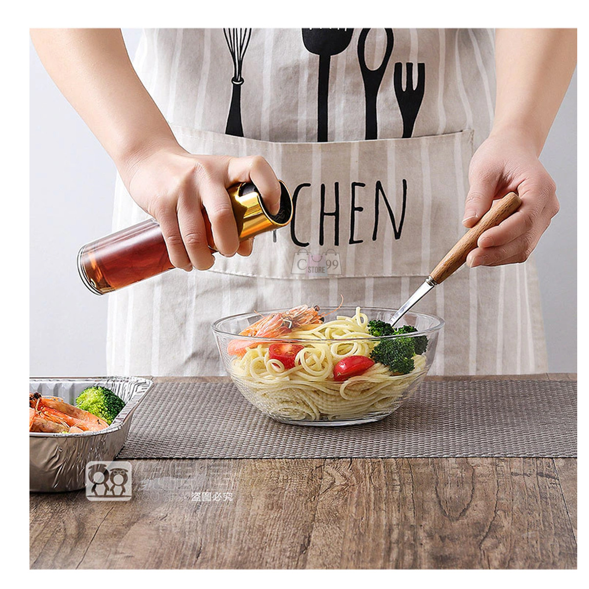 Hecho de acero inoxidable de alta calidad y vidrio transparente de calidad alimentaria sin BPA, no contiene sustancias nocivas. 6. Diseño exquisito del pulverizador de aceite (boquilla integrada, botón antideslizante, vidrio transparente), puede hacer que su cocina sea más fácil y feliz, y mantener su cocina agradable y elegante.