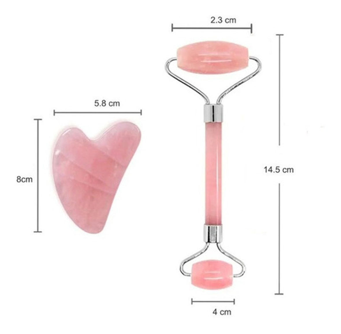 Doble rodillo en cuarzo grande para cuello, mentón, mejilla y frente; Rodillo pequeño para ojos, nariz y labios.