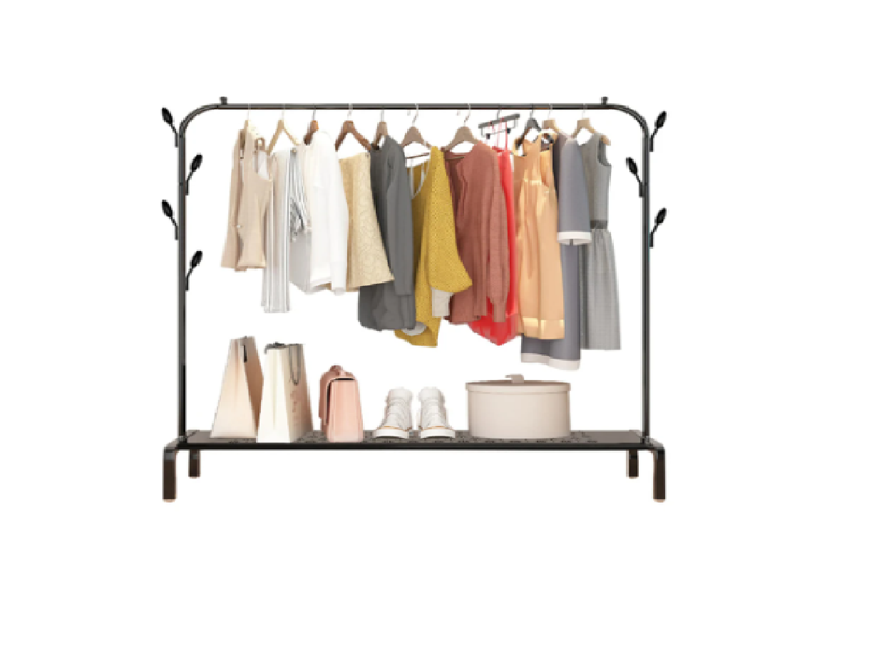 - Rodillos lisos: ruedas de doble propósito / pies planos, puede optar por moverse o solucionar como desee, para perchas y almacenamiento seguros y estables.
