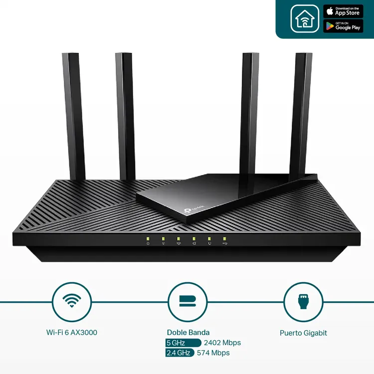 Router TP-LINK WiFi 6 4 Antenas Doble Banda AX3000 Mbps Archer AX55 Gigabit