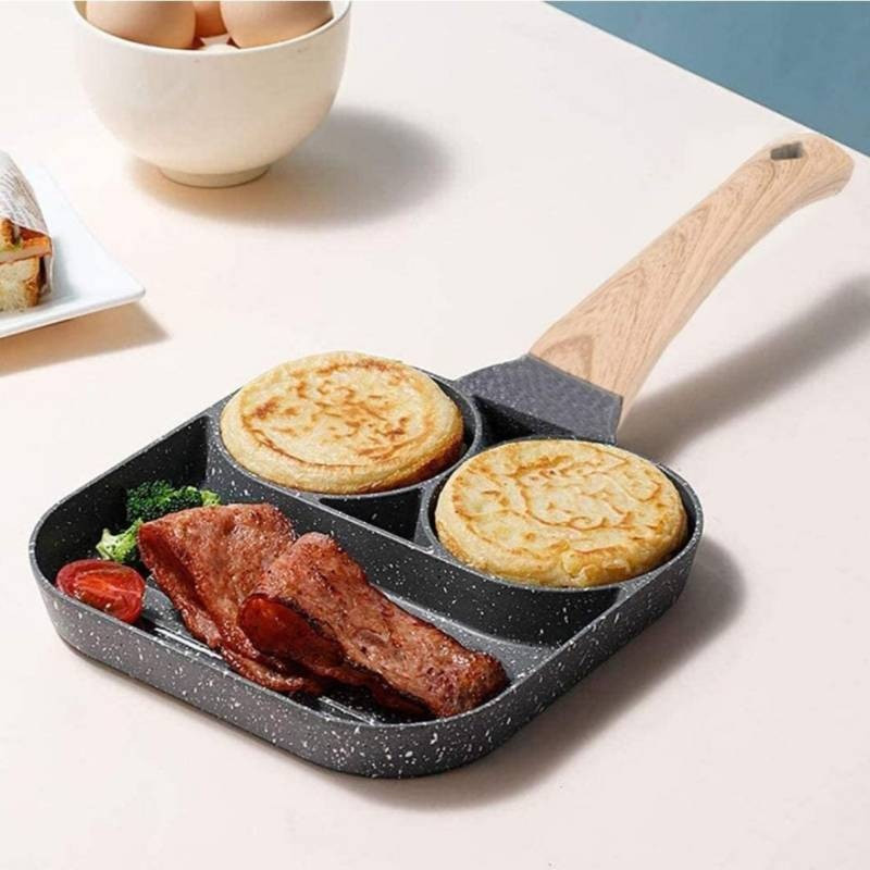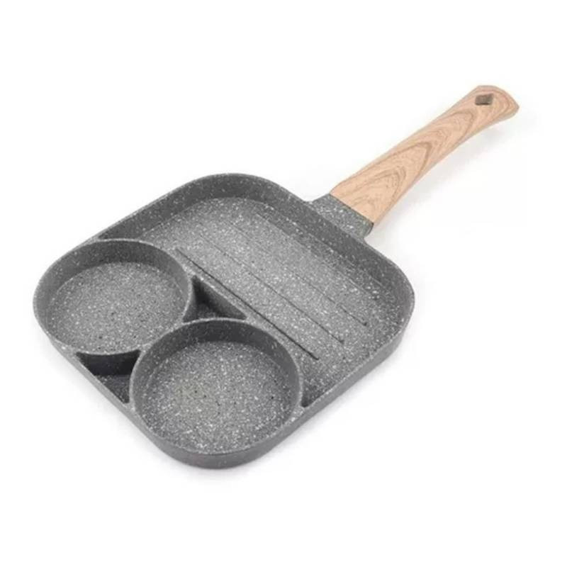 Espectacular sartén multifuncional. Puedes prerar 2 huevos al mismo tiempo que verduras, quesos, tocino u otros. Cuenta con 3 divisiones que te permitirán optimizar tiempo y ahorrar energía o gas en la preparación de alimentos.