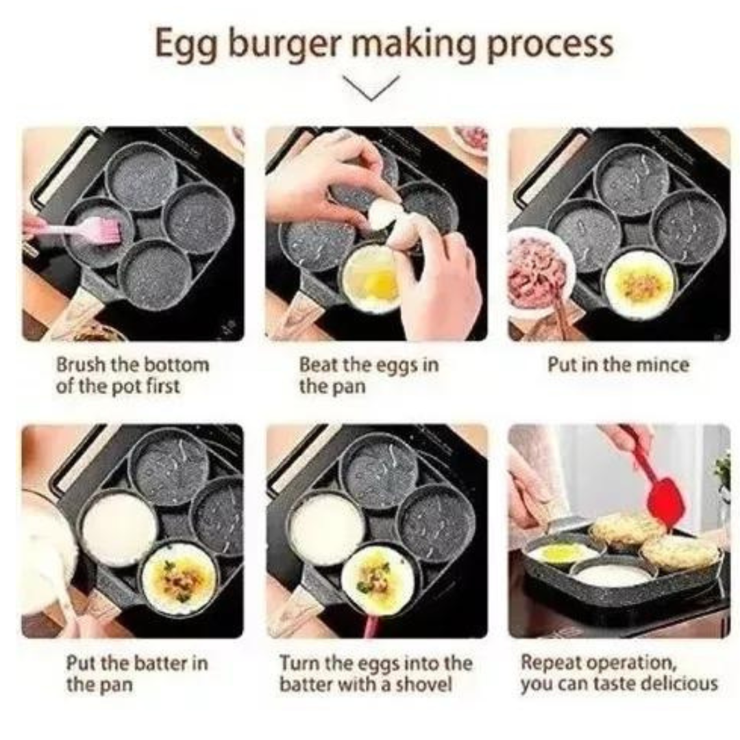 Usos múltiples: Este sartén es muy practico para preparar Huevos, Tortillas, Arepas, Pancakes, Hamburguesas entre otros, cuenta con 4 compartimentos para que cocinar sea rápido y fácil.