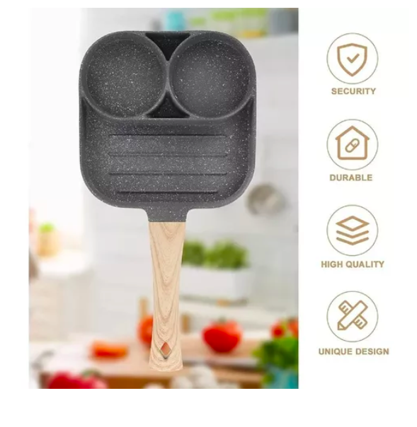 Sartén antiadherente para huevos , Sartén antiadherente 3 en 1 con parrilla dividida, mango resistente al calor.