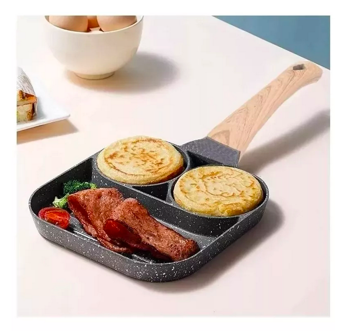 Usos múltiples: Este sartén es muy practico para preparar Huevos, Tortillas, Arepas, Pancakes, Hamburguesas entre otros, cuenta con 4 compartimentos para que cocinar sea rápido y fácil.