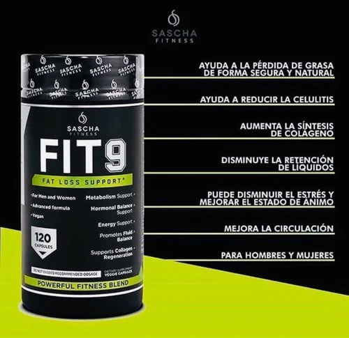 FIT 9 está compuesto por nueve ingredientes Super que te ayudarán a lograr una mejor versión de ti mismo. Nueve ingredientes efectivos y seguros que lo ayudarán a mejorar la composición de su cuerpo de una manera progresiva y natural, le ayudarán a mejorar su equilibrio hormonal y, como sabe, sus hormonas controlan absolutamente todo, la pérdida de grasa, la energía, el apetito y el estado de ánimo. No solo te ayudará a perder grasa más fácilmente, sino que también ayudará a mejorar tu piel, ya que estimula la síntesis de colágeno, disminuye la celulitis al mismo tiempo porque contiene componentes que mejoran tu circulación y disminuyen la retención de líquidos. Este producto es para mujeres y hombres, no es una píldora milagrosa, es una herramienta que lo ayudará a lograr mejores resultados, es el complemento ideal para una buena alimentación y capacitación.
