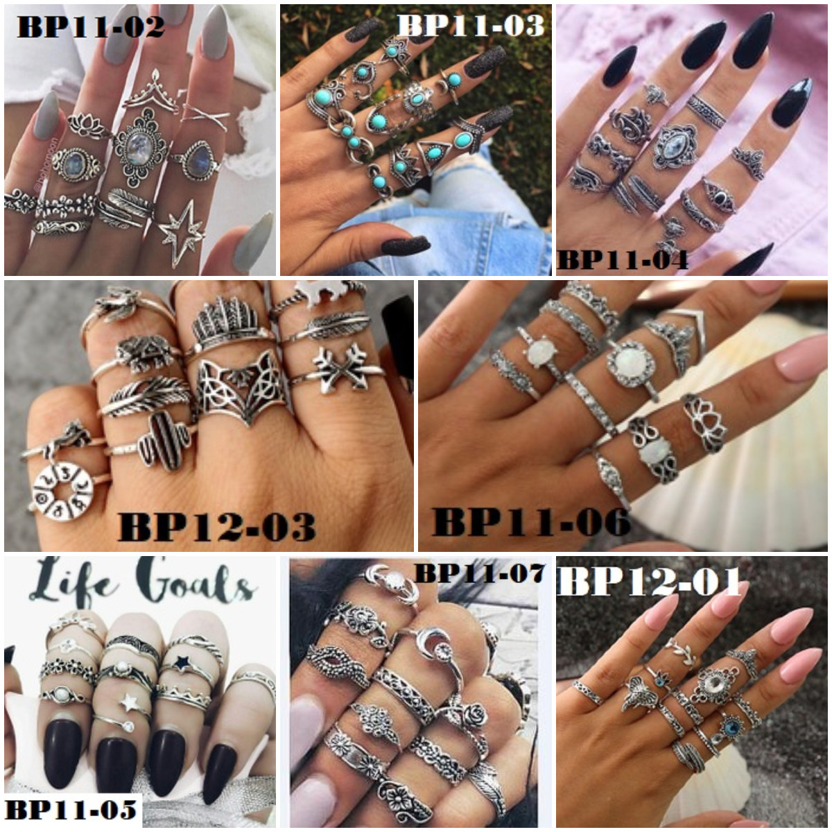 Hermoso set de anillos Vintage diferentes piezas, de distintas formas geométricas, usar estos anillos es muy original, puedes tener anillos, con grabados de distintas formas, distintos tamaños, voluminosos, hermosos