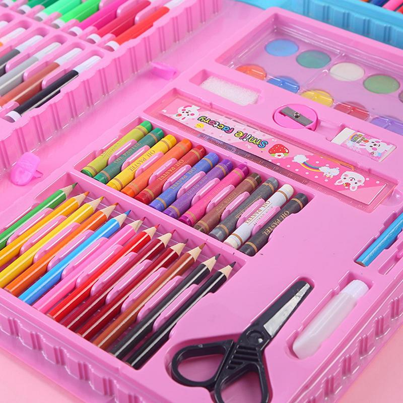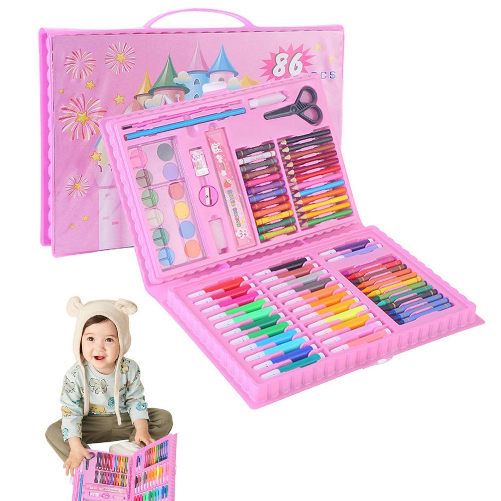 Este set de arte de 86 piezas te da todas las herramientas que necesita tu pequeño o pequeña cuando la inspiración aparece. Es un estudio portátil con todo lo que se necesita, tales como docenas de ceras, lápices, marcadores, acuarelas y hojas de papel de dibujo que pueden usar durante el tiempo que desee.