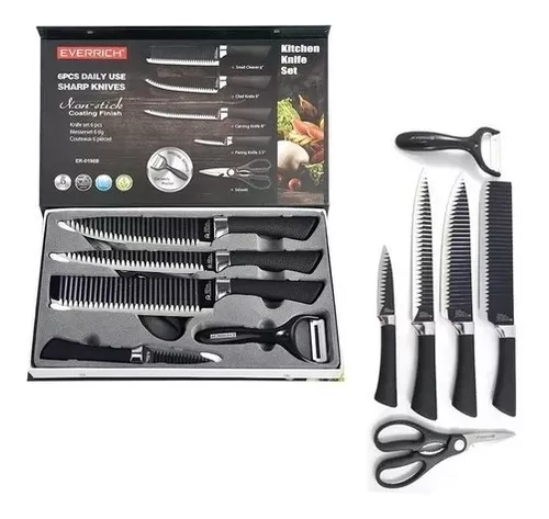 -Incluye cuchillo de chef, cuchillo de trinchar, cuchillo pequeño, cuchillo de cocina, tijeras y pelador de cerámica.Por tu compra Recibes: