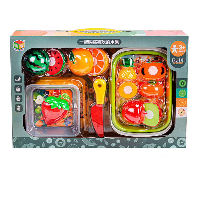Casa de juegos para niños simulación, sandía, naranja, manzana, piña, fresa, fruta cortada, rebanada, música, cesta de frutas Y balanza