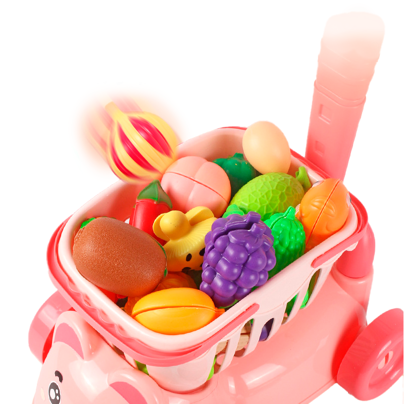Carrito de compras de supermercado para niños, casa de juegos, carrito pequeño, fruta cortada, simulación divertida, cocina, juguete para jugar a las casitas