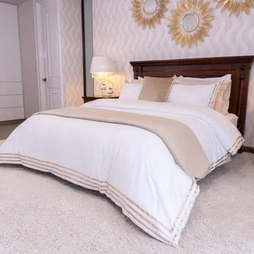 • El set duvet mocca en su medida para cama King incluye 1 duvet de 270 cm x 245 cm, 1 sábana ajustable de 200 cm x 200 cm x 25 cm, 2 fundas de almohada de 50 cm x 70 cm y 2 fundas de almohada decorativa.