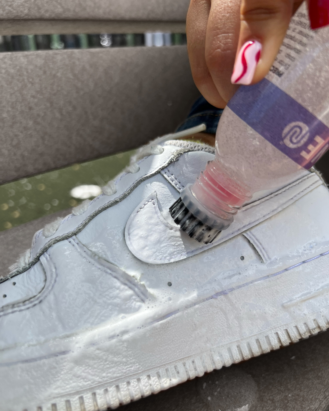 - Frotar con el cepillo incorporado la superficie del calzado que desea limpiar