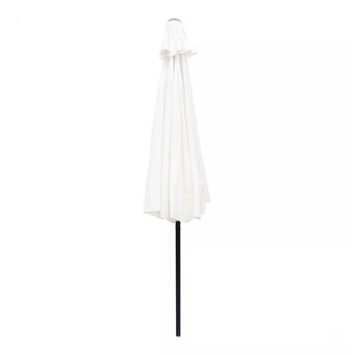 Sombrilla con brazo lateral con un diámetro de 2.7 metros y una altura de 2.20 metros. Su estructura y base está fabricada de aluminio. Brindan a la pieza una alta estabilidad en todo tipo de suelos. La tela es de poliéster, resistente a los rayos UV y medio ambiente, perfecta para todo tipo de exteriores.