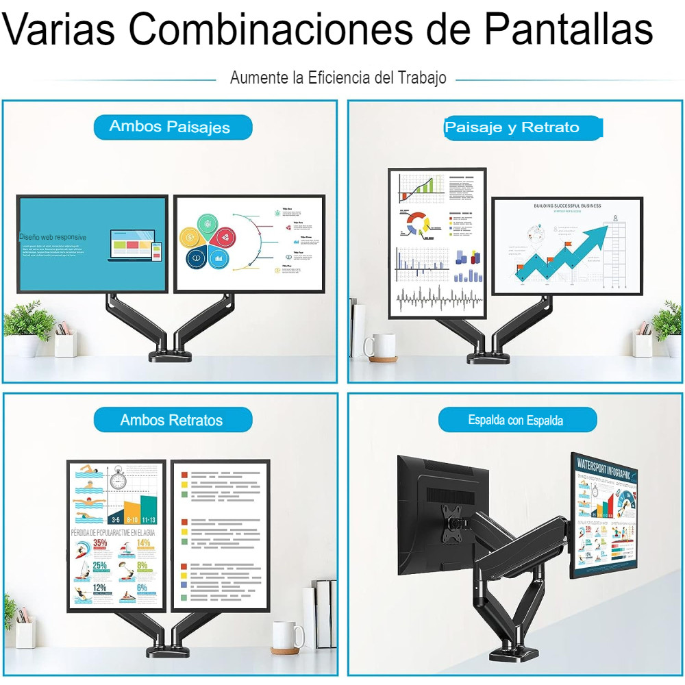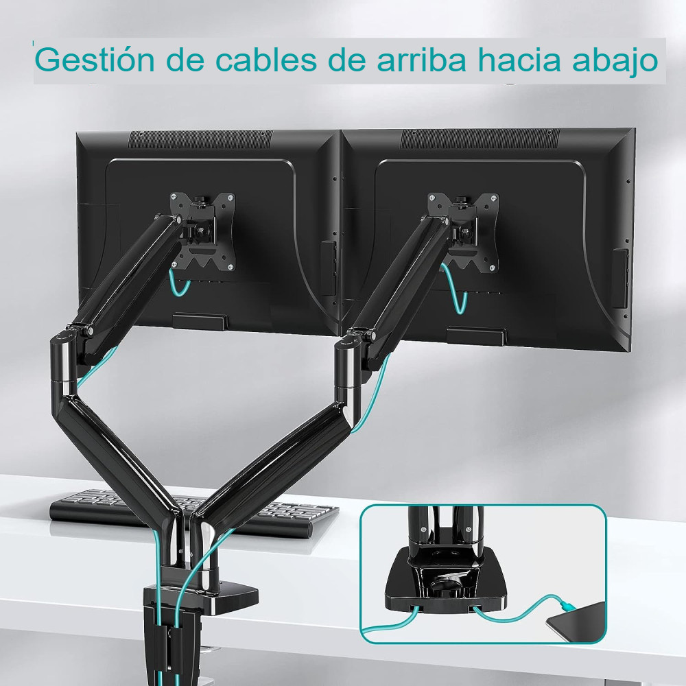 Monta tu pantalla con este soporte para monitor, oculta los cables dentro de los brazos, ten un espacio de trabajo bien organizado.