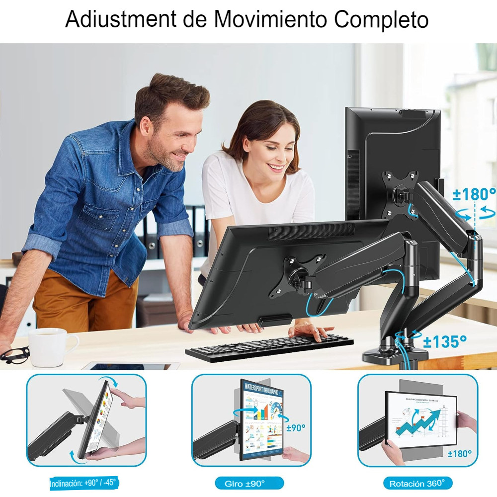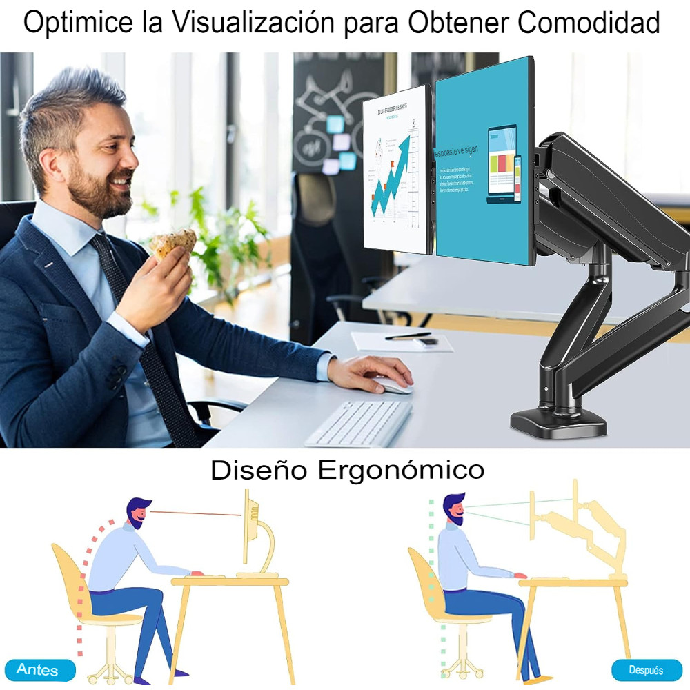 Este soporte de escritorio para monitor asegura tu monitor de forma segura al escritorio. Puedes configurar y ajustar libremente tu monitor en la mejor posición.