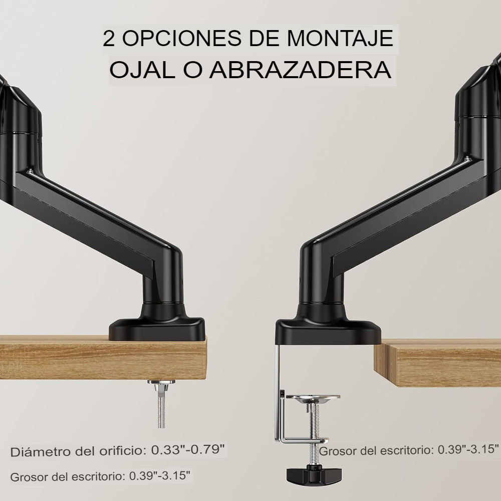 El soporte para monitor funciona con la mayoría de monitores de computadora de hasta 32 pulgadas con VESA 75×75 a 100x100mm, carga de hasta 19.8 libras. Tenemos una base de abrazadera C para escritorio de 0.4 a 1.9 pulgadas de grosor y base de montaje de ojales para escritorio de 0.4 a 3.1 pulgadas de grosor con ojal.