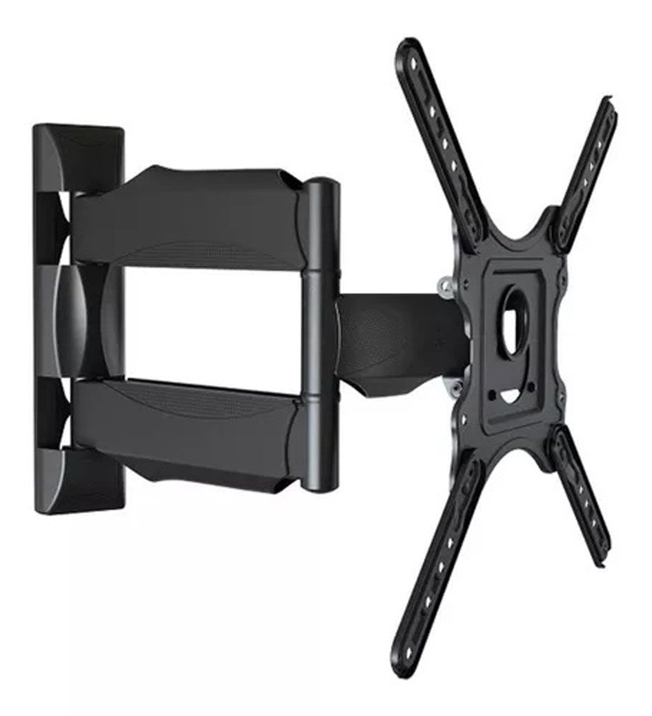 Extremadamente seguro, práctico y versátil, diseñado con tres articulaciones que garantizan la función de rotación horizontal de un ángulo máximo de 180 ° y la función de inclinación de la placa de enganche de TV igual a -15 / + 15 °.