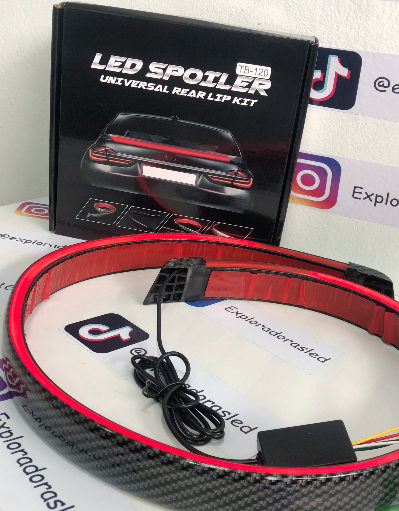Spoiler Fibra de carbono para baúl Spoiler fibra de carbono funciones direccionales, estacionarias, cocuyo, luz media 1.20 m universal para vehículos 12v