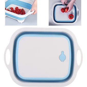 Tabla de cortar plegable portátil con colador – multifuncional de plástico para cocina, plato de silicona, para lavar frutas y verduras @Multifunción 3 en 1: tabla de cortar plegable, colador plegable, cesta de drenaje para lavado de verduras, cesta de almacenamiento. Todo en uno, se puede utilizar para lavar verduras / frutas / platos como un plato plegable, para cortar rebanadas como tabla de cortar, para almacenar bebidas glaseadas y frutas vegetales como cesta de almacenamiento.@Material respetuoso con el medio ambiente: hecho de material de polipropileno de calidad alimentaria premium + TPR, duradero, no se deforma fácilmente. Apto para lavar platos para una fácil limpieza, hecho de plástico TPR sin BPA, sin olor, no tóxico, antideslizante, no se agrieta ni se deforma, 30 mm de grosor extra proporcional una mejor durabilidad. @Necesidad para exterior. La tabla de cortar plegable multifunción ofrece gran comodidad y mejora la eficiencia para el trabajo de cocina. Los mangos ergonómicos contorneados para facilitar el movimiento, las características portátiles son adecuadas para viajes, camping, senderismo, barbacoa, perfecto para glaseado de bebidas, lavar platos, cortar verduras y carnes.@Fácil de usar: ahorra espacio y fácil de usar: presiona el centro con la mano y sujeta el marco con otra mano, abre la tina del plato y empieza a lavar y drenar con el tapón de inserción. Los soportes antideslizantes especiales se pueden colocar en cualquier lugar incluso en superficies lisas. Plegable y luego cortar alimentos en la tabla libremente, el diseño plegable puede ahorrar mucho espacio y fácil de limpiar.