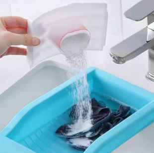 Con el recipiente de jabón integrado en el mango agarrador podrás lavar tus prendas facilmente.