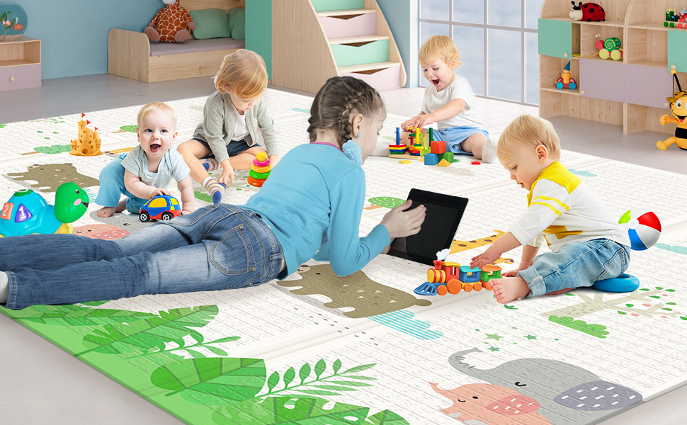Se puede plegar y es reversible ya que es de doble cara con dos patrones diferentes con alfabeto, número, colores y animales de dibujos animados. Esta alfombra para el gateo de tu bebé se pliega y se almacena fácilmente, lo que permite ahorrar espacio. Ideal y ligero para llevar alrededor de la casa, cocina, sala de estar, dormitorio, camping, picnics.