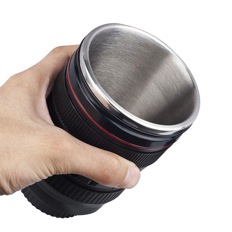 - Parece una lente de cámara real pero en realidad es una divertida taza.