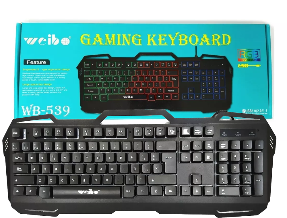 Este Teclado Gamer AOAS WB-539 está construido en material metálico, convirtiéndolo en un peso pesado en su categoría. Adicional está equipado con luces LED Triclor fijas o podrás programarlo para que las luces apaguen y enciendan sistemáticamente
