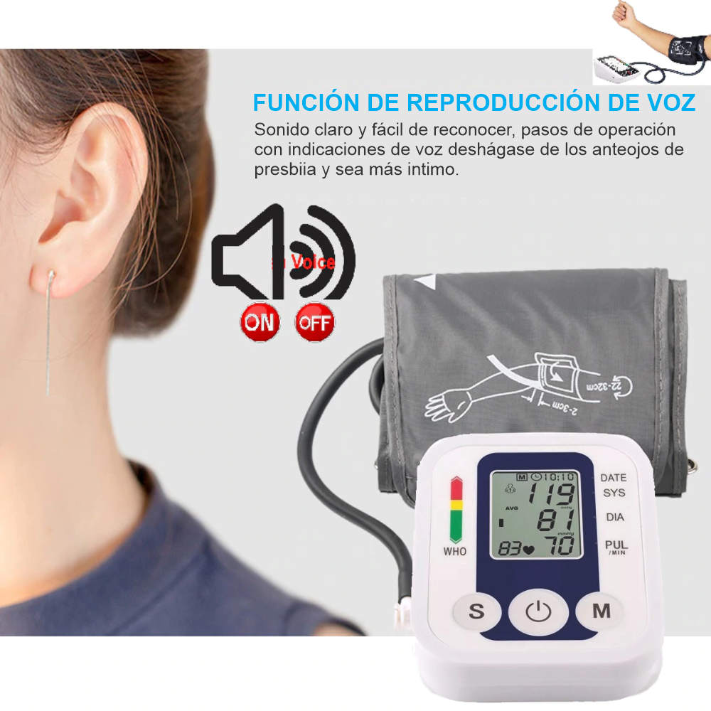 TENSIÓMETRO DIGITAL LCD INTELIGENTE CON VOZ MEDIDOR DE PRESIÓN ARTERIAL Y PULSO
