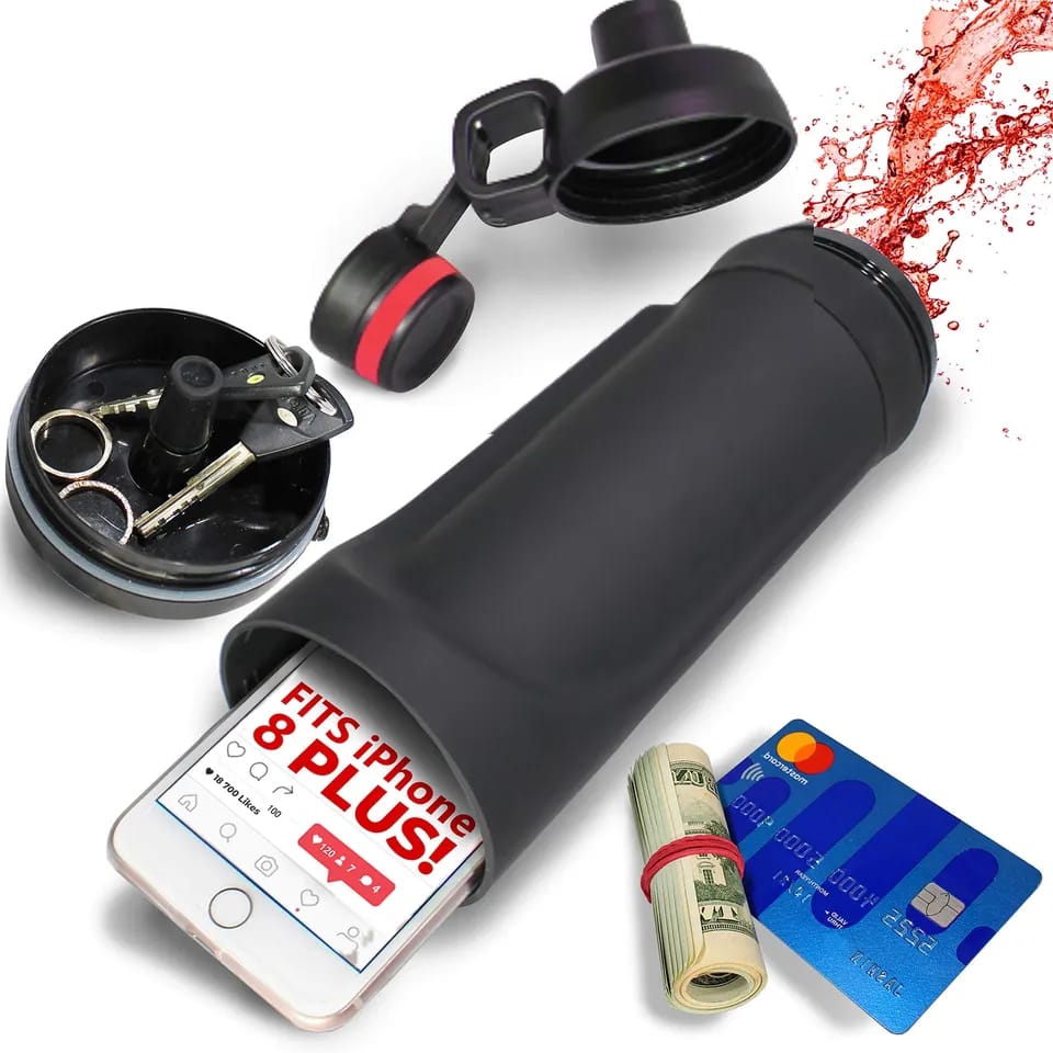 2. El diseño a prueba de fugas se adapta a los teléfonos más grandes: caja fuerte revolucionaria para botellas de agua con patente en trámite diseñada para adaptarse al iPhone 8 Plus o cualquier teléfono móvil más pequeño, pero puede que no se ajuste a la funda de su teléfono dependiendo del tamaño del mismo. El compartimento oculto secreto es de tamaño 3,3 »x 7» x 0,5 ».