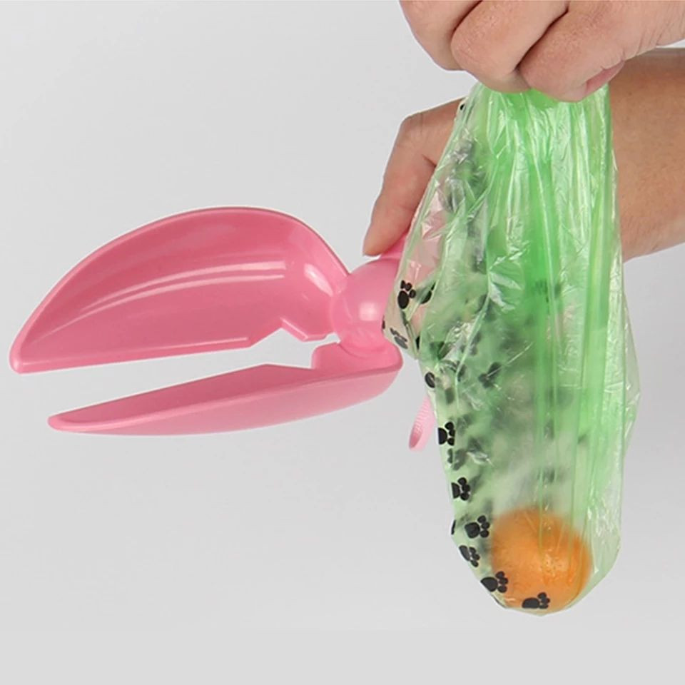 Tijera recogedora portátil para recoger las necesidades de excrementos de heces de perros y animales domésticos – Porta bolsas con gancho y cordón de transporte