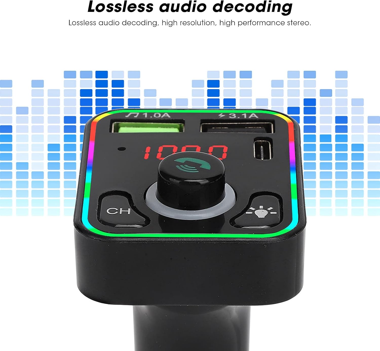 Fabricado con materiales de alta calidad, el transmisor FM Q5 está diseñado para ser duradero y fácil de usar. Su diseño compacto y elegante se integra perfectamente en el interior de tu vehículo, mientras que su pantalla LED RGB proporciona una visualización clara y moderna. Los botones de control accesibles permiten cambiar de canción, ajustar el volumen y contestar llamadas con facilidad.