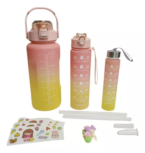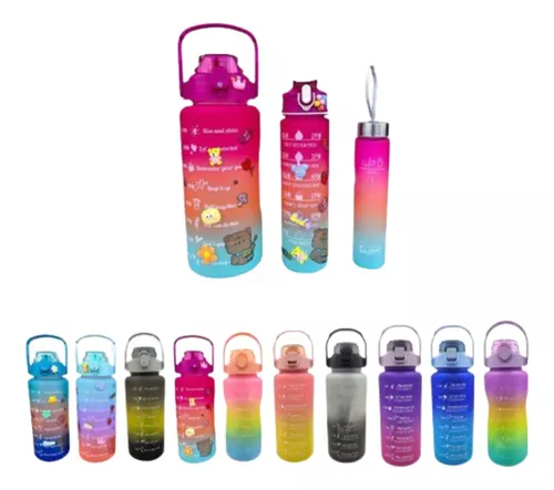 🌟 El Trio de Termo Motivacional con Pines y Stickers es un conjunto de tres termos de alta calidad diseñado para llevar tus bebidas a todo lado. Cada termo tiene una capacidad distinta, 2 litros, 1 litro, 330 ML , estan hechos de PC, PP y silicona