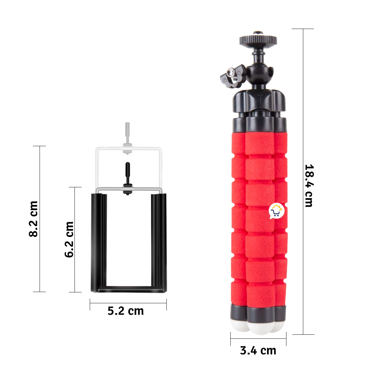- Soporte de celular: 6.2 cm x 5.1 cm x 3 cm / Estirado: 8.2 cm x 5.1 cm x 3 cm.